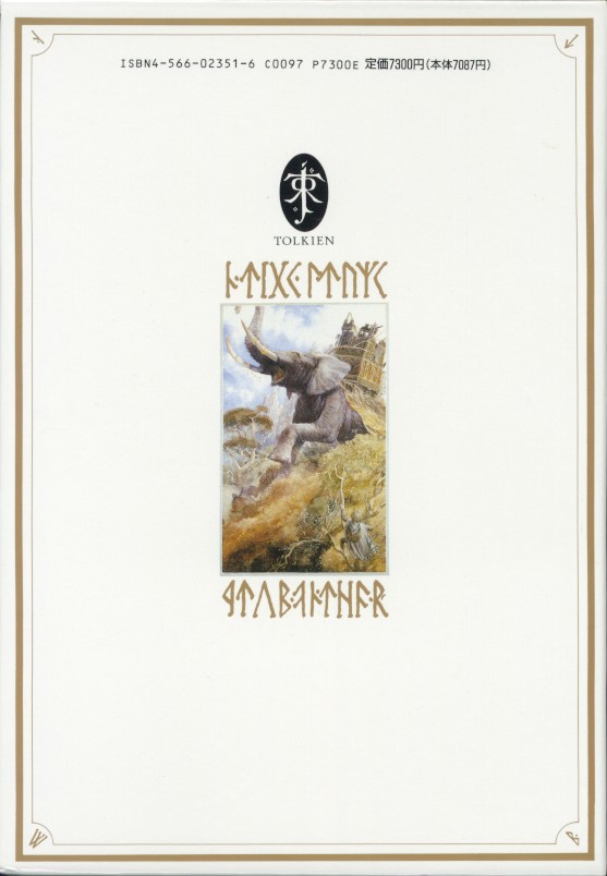 Dust-jacket is dark red. Printed in upper cover: Heraldic device of Finwë. Printed in lower cover: Heraldic device of Fingolfin. One textual change from 1st impression is found, but was not confirmed when that was made.| 2nd impression | s59(84)/5/30 | ¥1300 | |